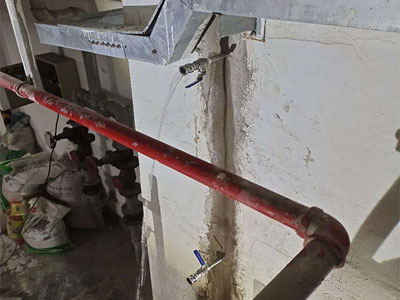 从底部开始注高分子注浆材料—注浆堵漏王,注浆压力控制在0.3~0.5MPa之间,待注浆的旁边一孔冒浆时可停止注浆,关闭阀门,再从另一孔注浆,然后依次循序进行,待全部注浆完毕后观察有无渗漏,如个别地方仍有渗漏可以从最近一孔补充注浆直到不漏为止。